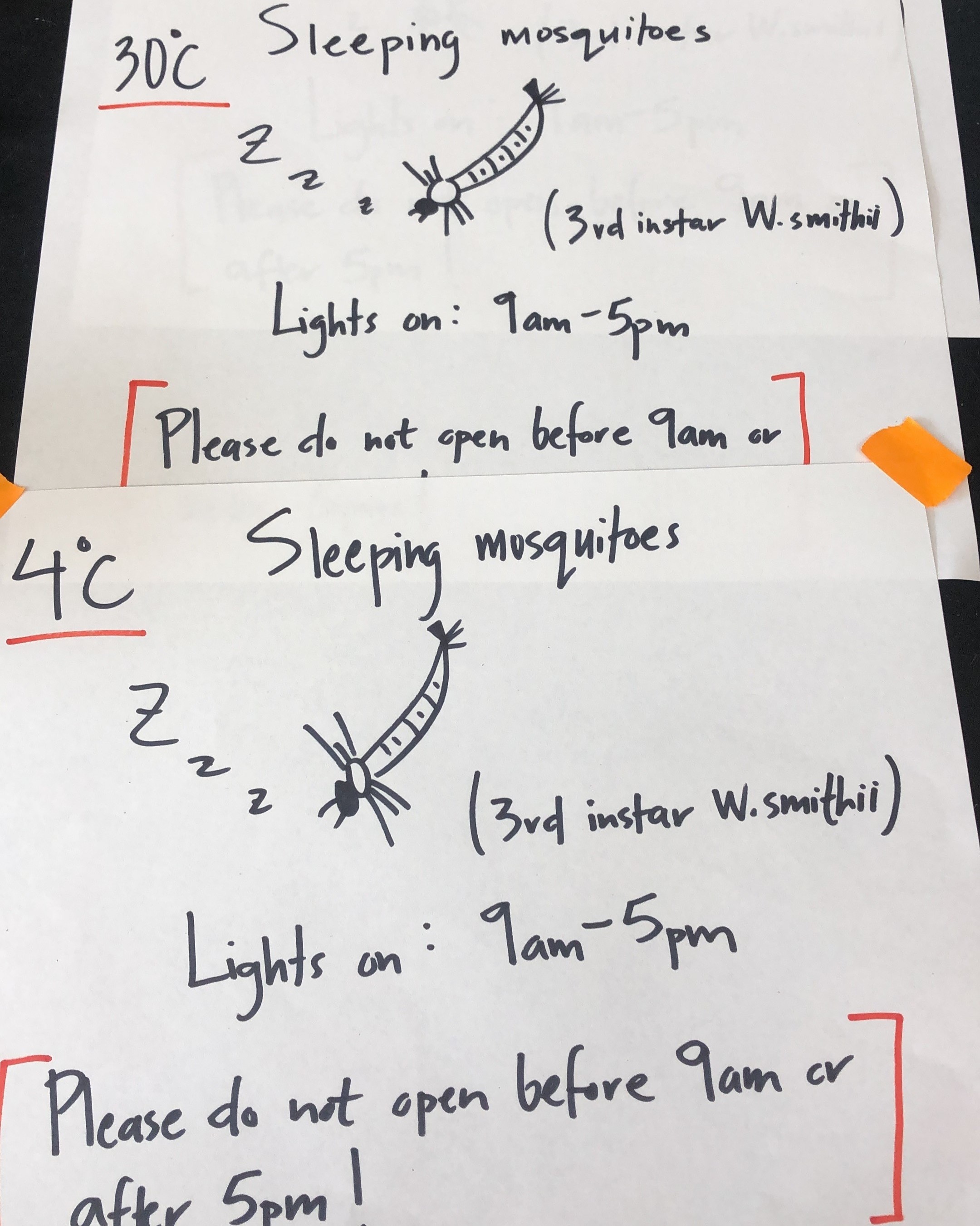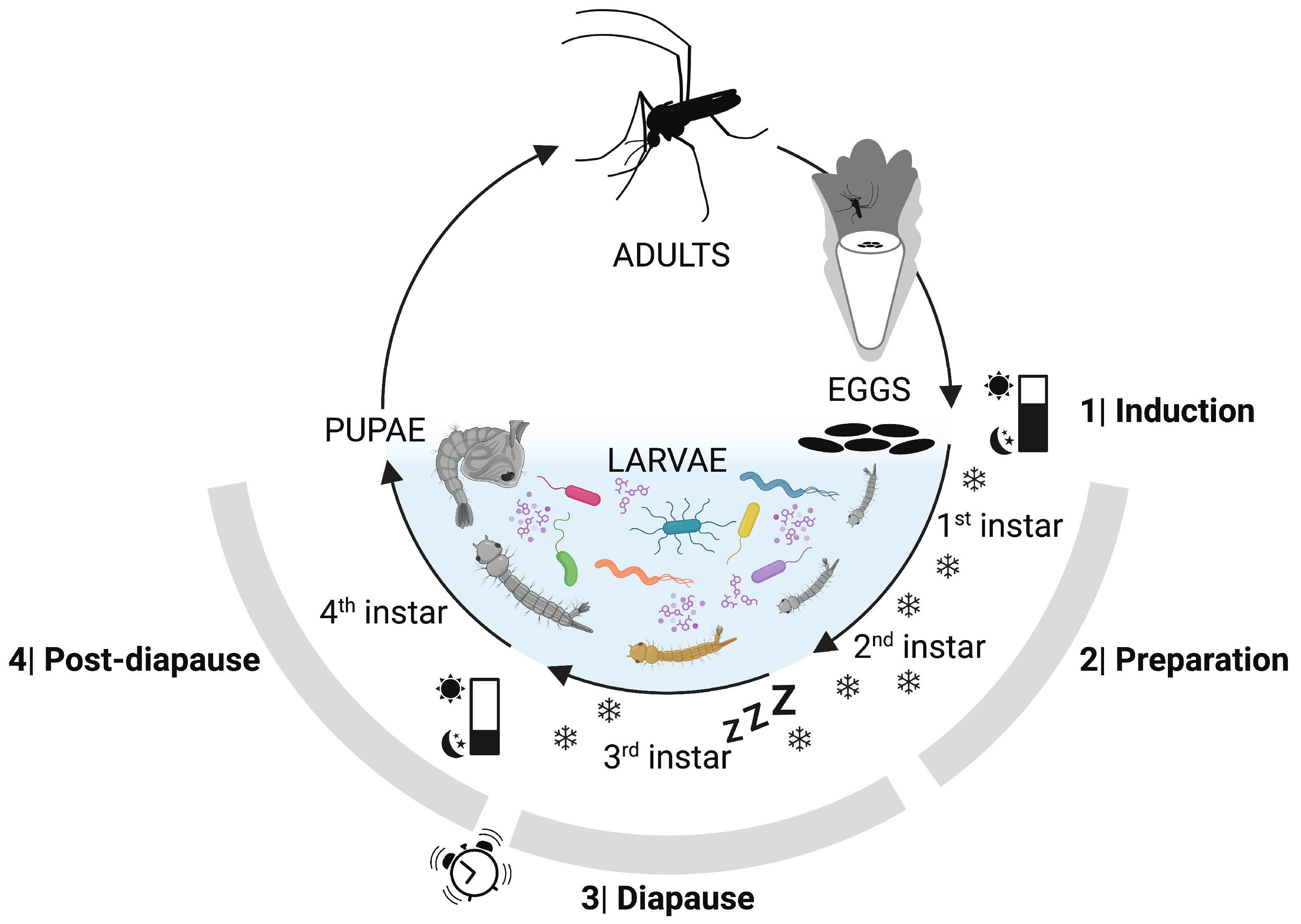 Work in the diapausing mosquito system will also be conducted across temperatures, to more accurately explore the effects of mismatched seasonal cues on diapause survival and host-associated microbiota (e.g., warm temperatures during diapause). This work is only possible through on-going collaboration with PhD student Heidi McKee in Dr. Kerri Coon’s Lab of Vector Biology and Microbiology.